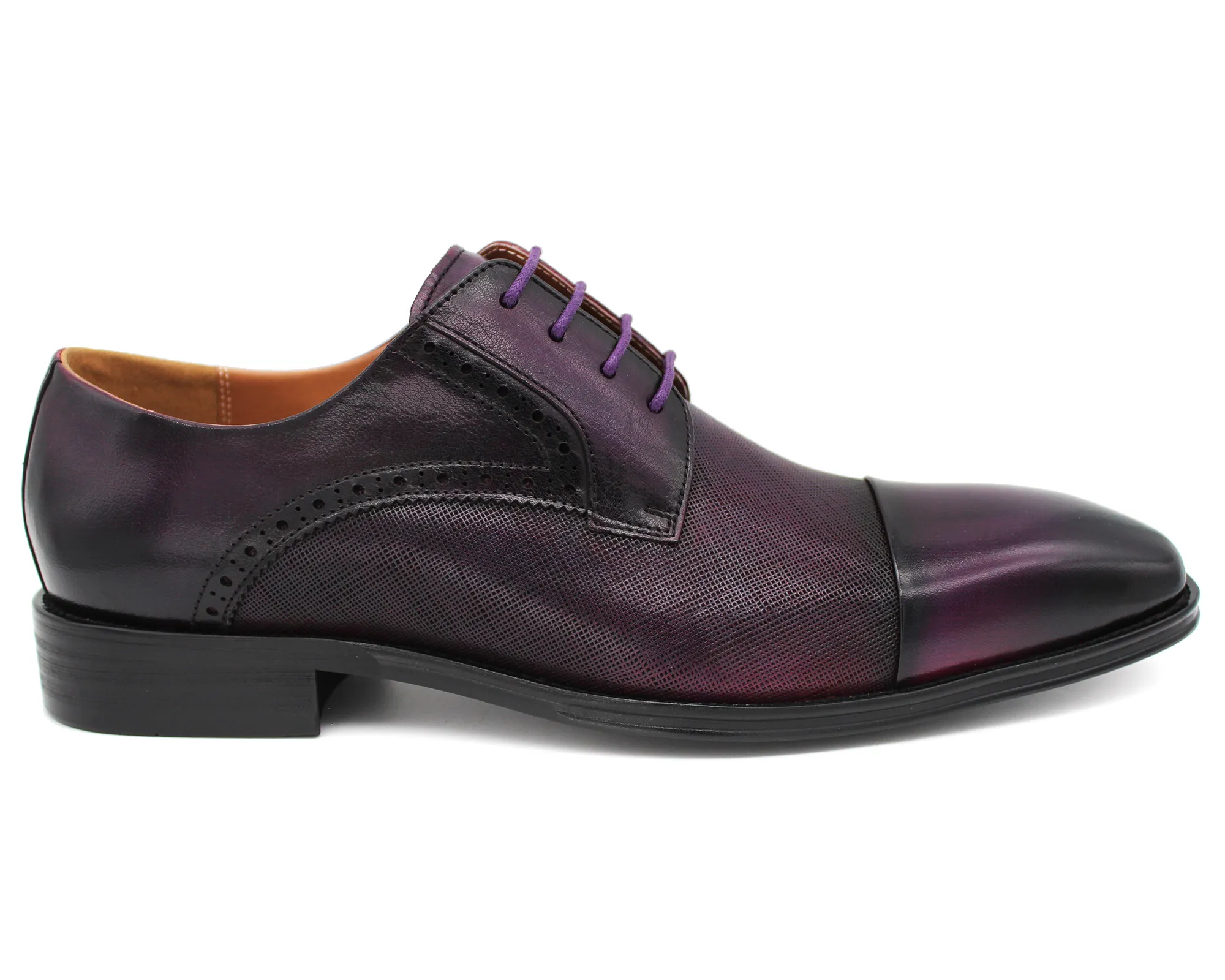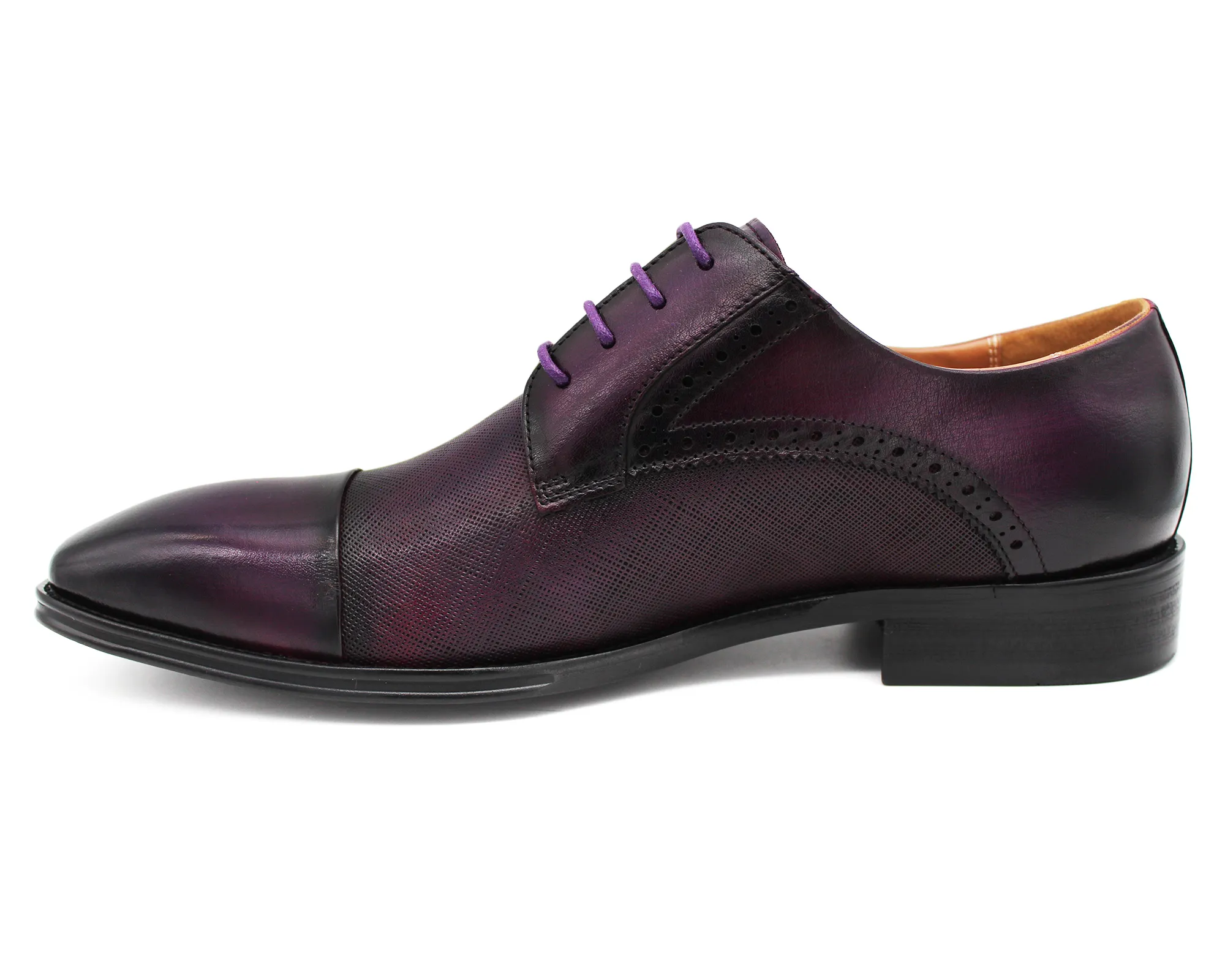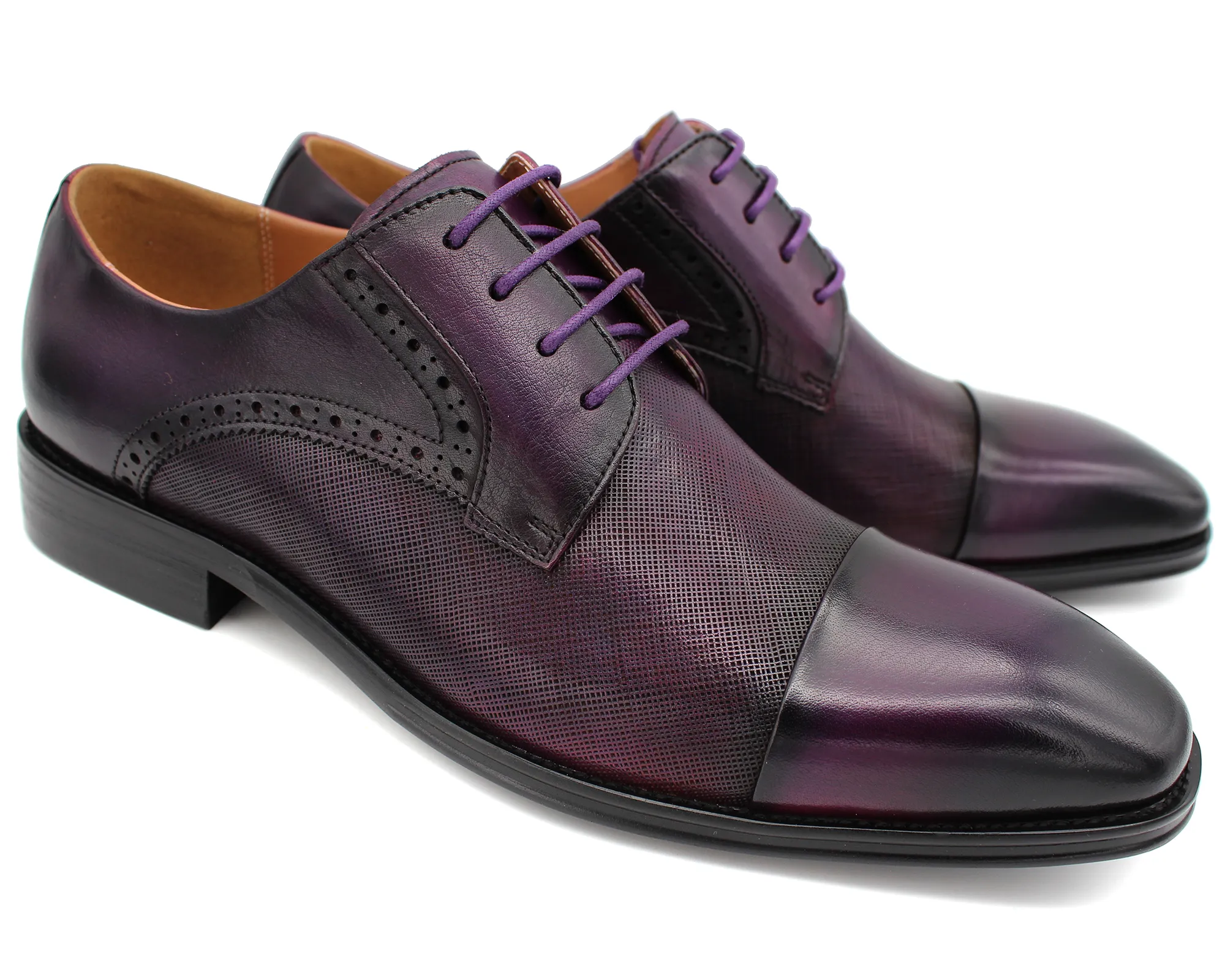 Purple embossed lace up formal shoes. Genuine leather upper. Leather lining.