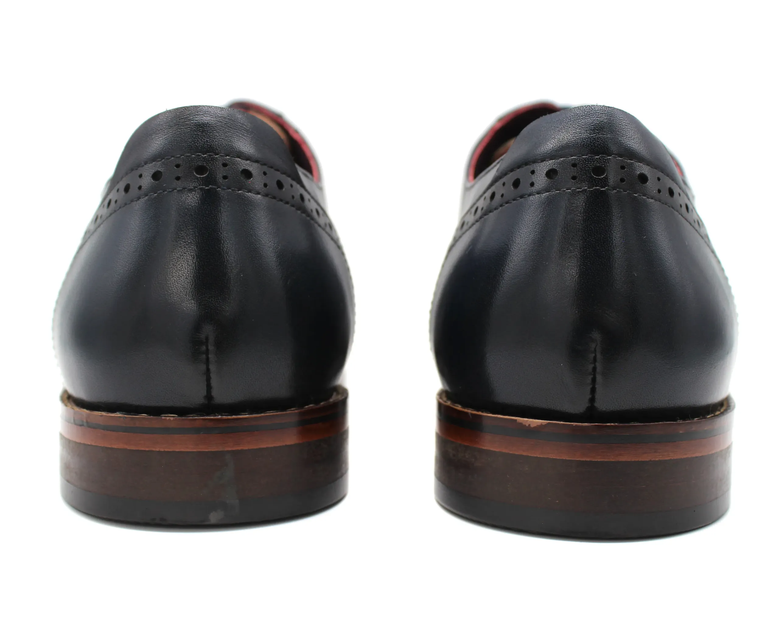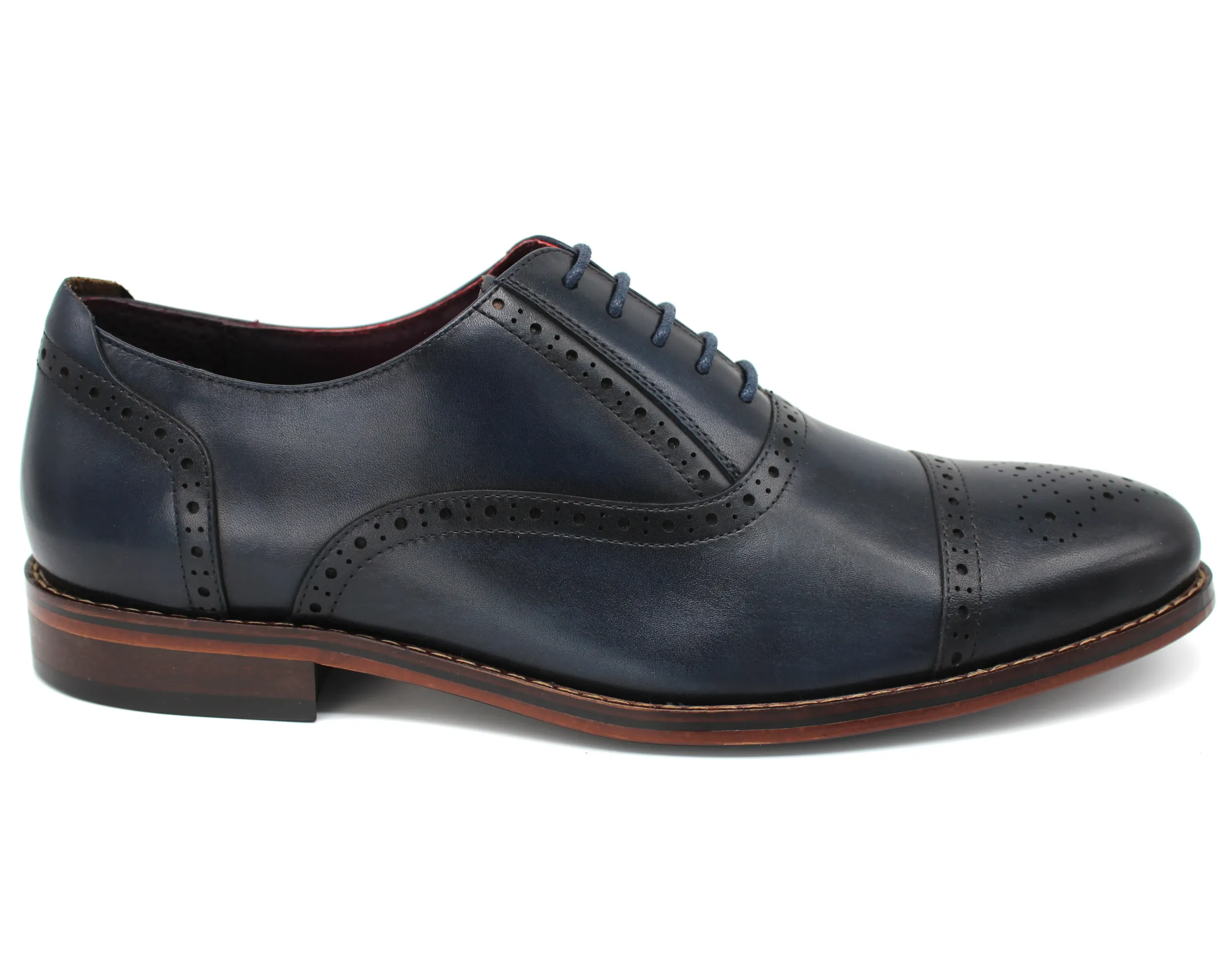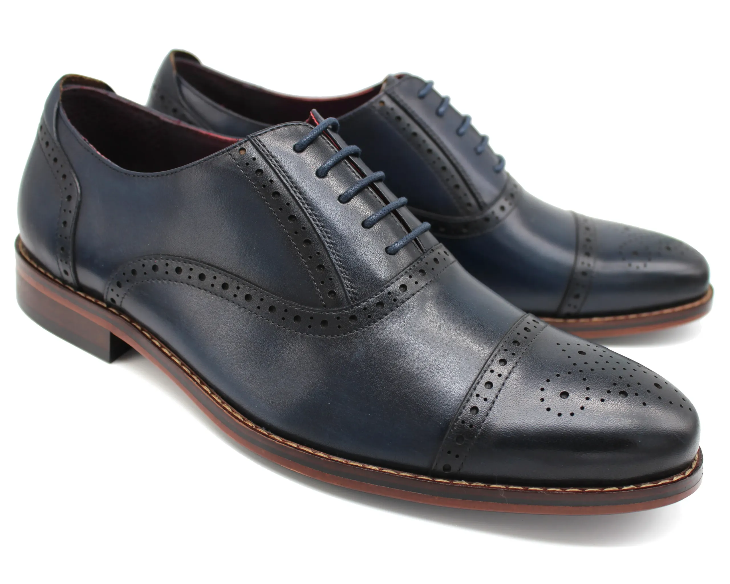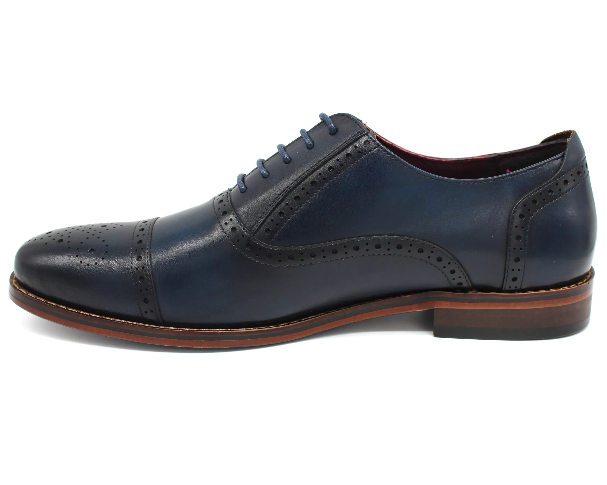 Navy semi brogue lace up formal shoes. Genuine leather upper. Leather lining.